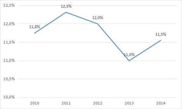 No período após 2008, observa-se que as receitas de transferência iniciam trajetória declinante, chegando a perder 0,5 p.p. do PIB até 2013 (último dado disponível). Essa trajetória das receitas de transferência é explicada pela política de desonerações do IPI (carros, eletrodomésticos, etc) e CIDE do Governo Federal, como forma de combater os efeitos da crise. Observou-se que a manutenção dessa estratégia política levou a uma trajetória de queda contínua das transferências.